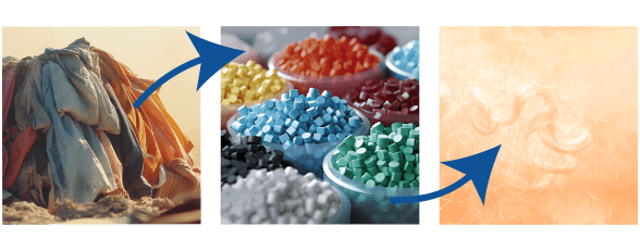 EcoLoft Zero is made from fossil based fabric scrap mechanically converted into staple fiber carrying the color and function.